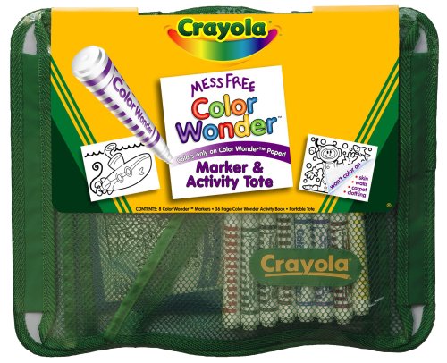 Sometimes the creative impulse can't be restrained, as evidenced by the countless juvenile masterpieces created on living room walls. The Crayola Color Wonder Marker and Activity Tote will let the parents of little Picassos and O'Keefes breathe a little easier, knowing that the eight markers will only color on the special paper provided by Crayola. The 36-page activity book that comes inside the tough green 11-by-14-inch mesh carrying case has plenty of undersea coloring pictures and puzzles to keep kids happy, and plenty more is available. The markers really are amazing--they don't leave marks anywhere but on the unique paper, and they don't smell as toxic as other markers.