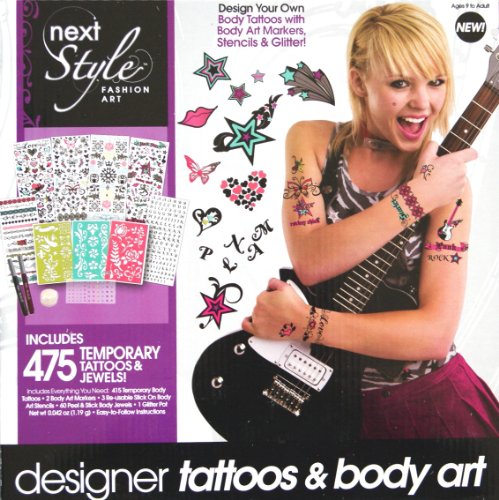next STYLE FASHION ART Designer Tattoos & Body Art Kit (Includes 475 Temporary Body Tattoos & Jewels, Stencils & Markers) Review